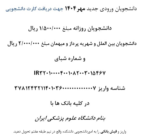 اطلاعیه دریافت کارت دانشجویی ویژه دانشجویان ورودی مهر 1404