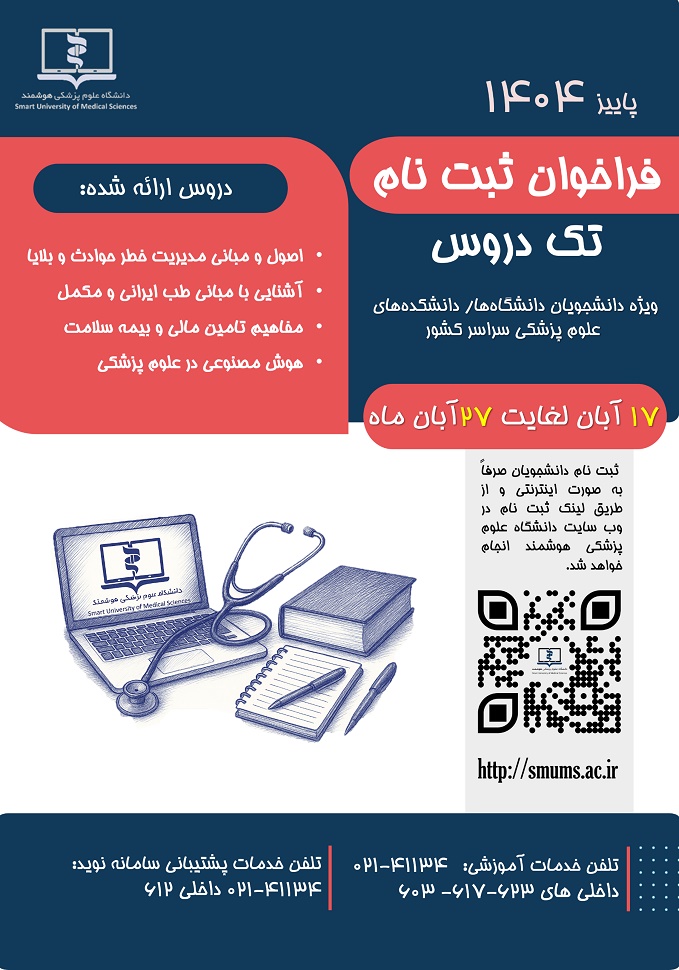 فراخوان ثبت نام تک دروس پاییز 1404 ( طب ایرانی، حوادث و بلایا، بیمه سلامت، هوش مصنوعی) 1404/08/18 - 12:37 - تعداد بازدید: 44 - تعداد بازدید کنندگان: 42 - کد خبر : 361551 - گروه اخبار : اطلاعیه ها - تعداد کامنت ها : 0 361551.mp3 فراخوان ثبت نام تک دروس پاییز 1404 ( طب ایرانی، حوادث و بلایا، بیمه سلامت، هوش مصنوعی)