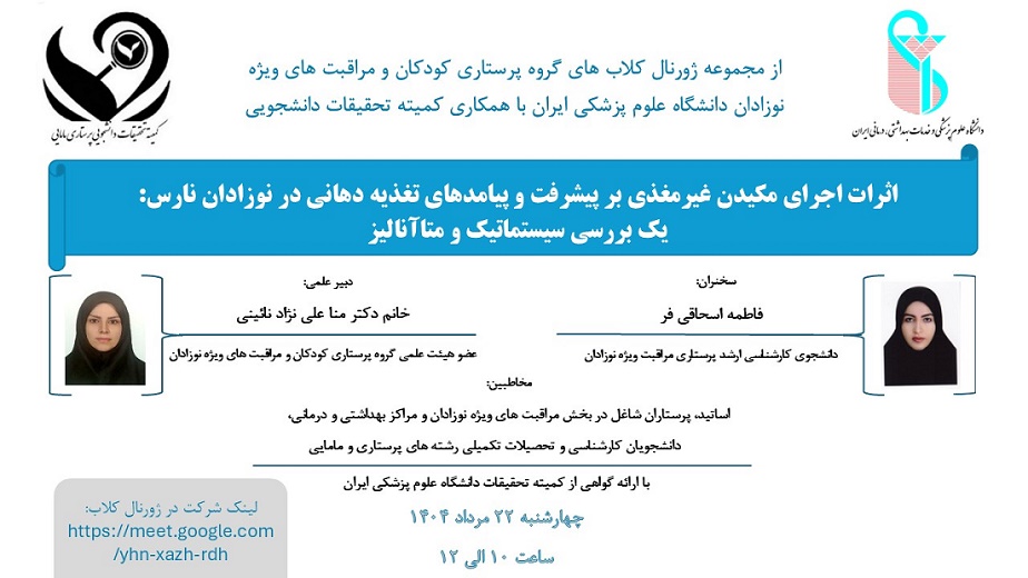 ژورنال کلاب: اثرات اجرای مکیدن غیر مغذی بر پیشرفت و پیامدهای تغذیه دهانی نوزادان نارس