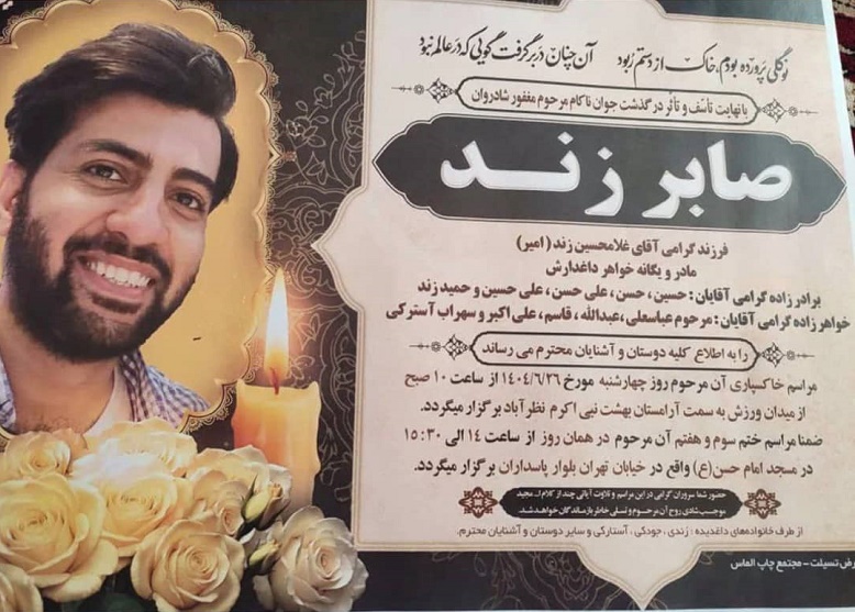 با نهایت تألم و تأثر، درگذشت صابر زند را به دوستان و خانواده محترم شان تسلیت عرض می‌نماییم. از درگاه خداوند متعال برای آن مرحوم، رحمت واسعه الهی و برای بازماندگان صبر و شکیبایی مسئلت داریم.